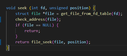 seek 함수에서 check_address 함수를 struct file * 타입의 file에 대해 호출하고 있습니다. 하지만 check_address 함수는 void *addr를 매개변수로 받아 해당 주소가 유효한 사용자 주소인지 확인하는 함수입니다.
